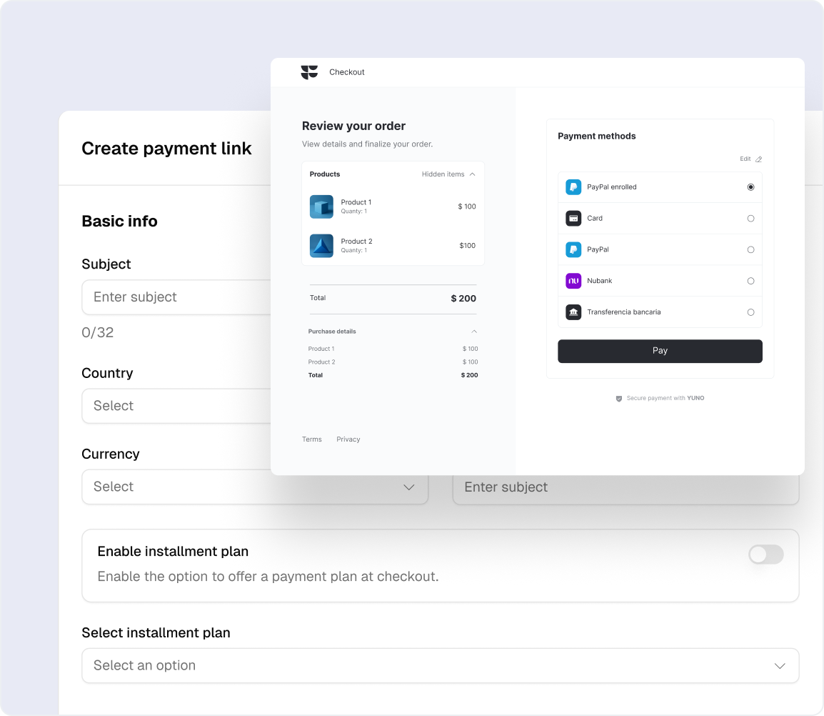 Launch quickly with a low-code solution and fully customize your checkout page by market and payment method.