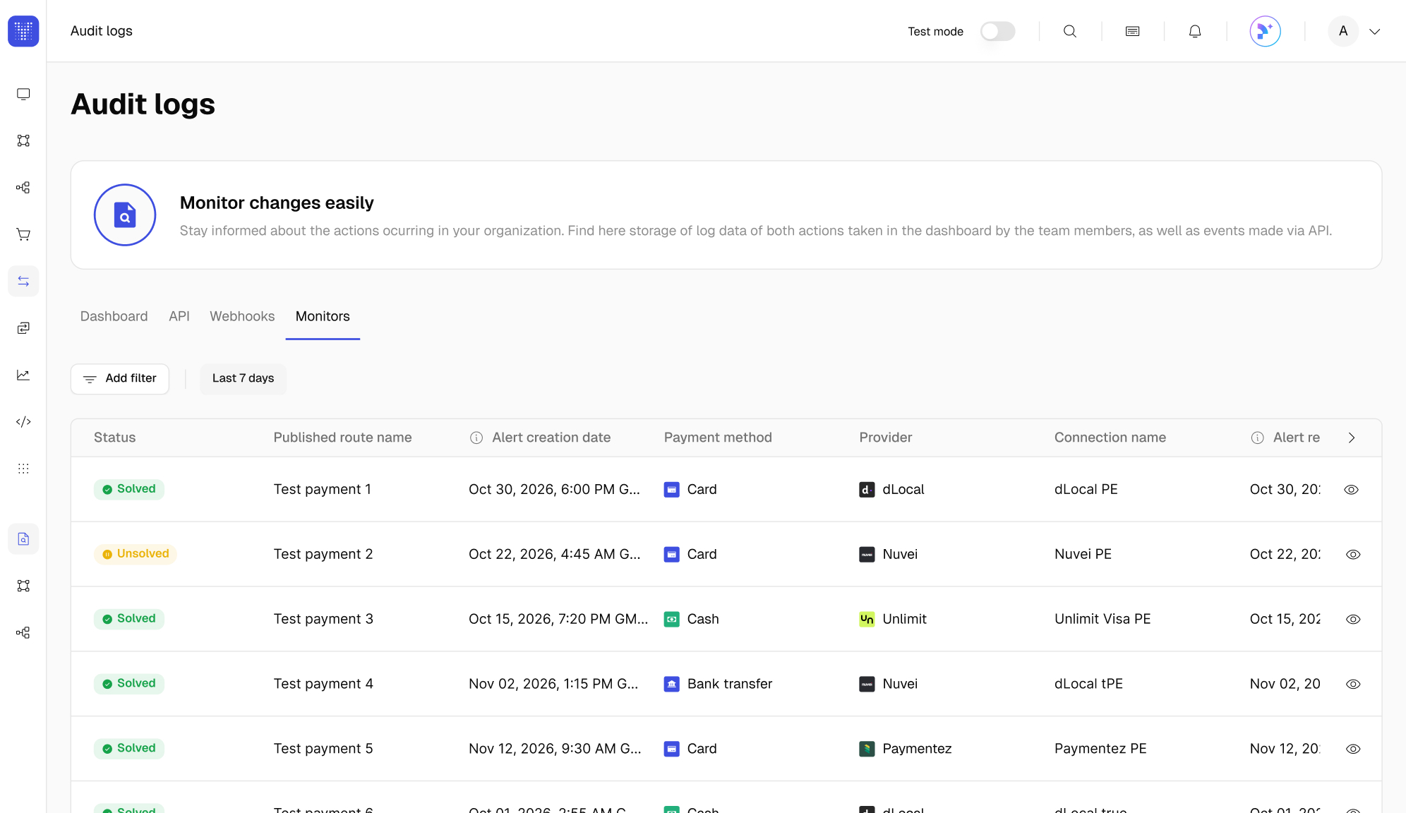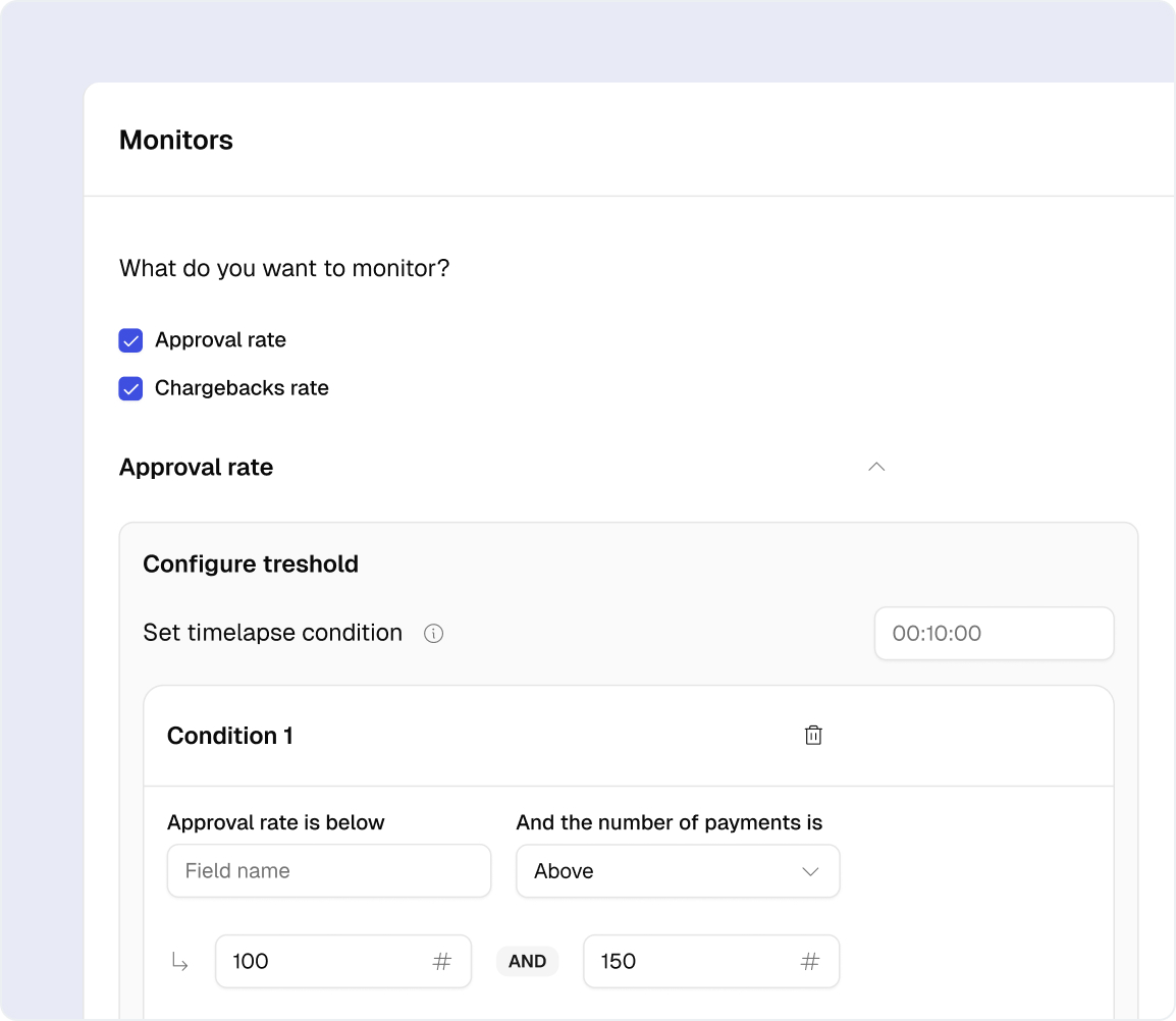 Tailor Monitors to your specific needs by setting up conditions such as routes by country, currency, and brand.