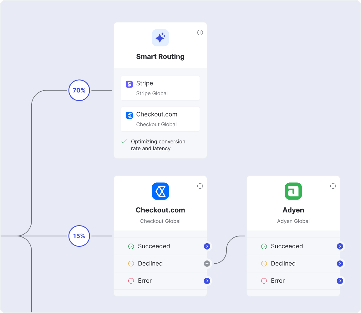 Customize your preferred providers and optimization criteria, and enhance the performance of your payment flows.